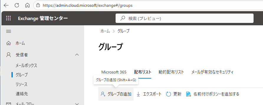 Microsoft365グループ、動的配布グループ、セキュリティグループは利用できませんのでご注意ください。入れ子でも利用できません。