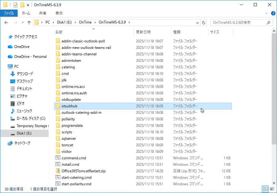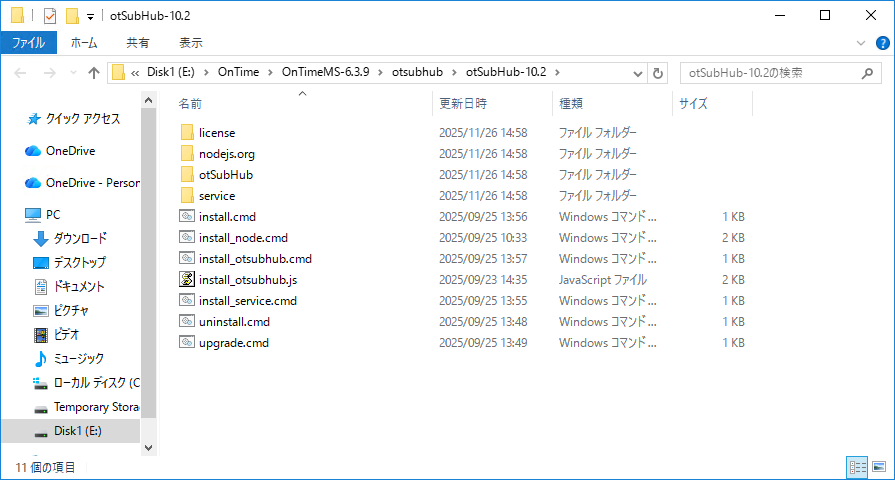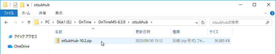 OnTime同期ハブのインストールプログラムはOnTimeプログラムの展開したフォルダ内の「otsubhub」フォルダにzip形式で提供しています。
