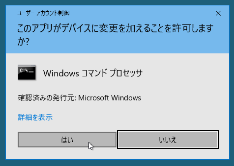 ユーザーアカウント制御が表示された場合は「はい」をクリックしてください。