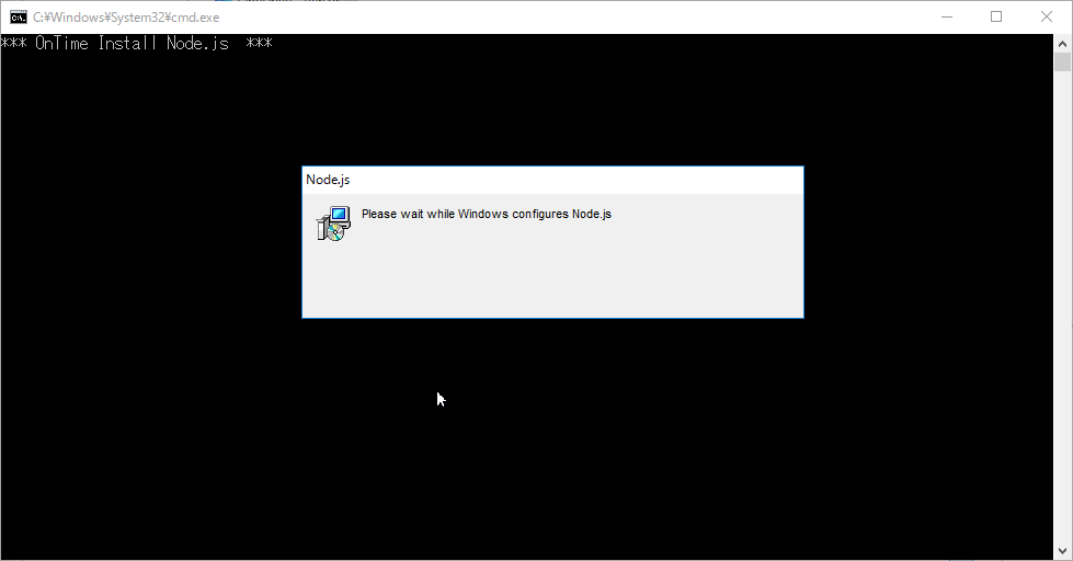 cmd.exeのウィンドウが開き、最新node.jsがインストールされます。