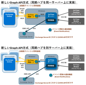 TLS証明書のpemファイルの配置とポート番号変更の設定について OnTime同期ハブは以下の2つから接続が行われます。 1.MicrosoftクラウドからのWebhookによるMicrosoft Grap…