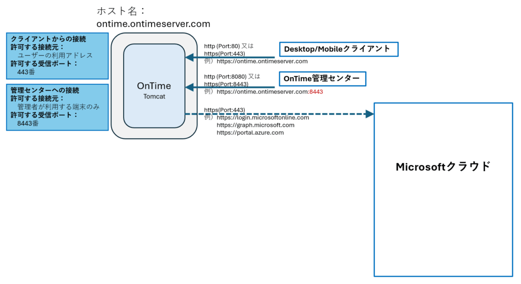 | 送信 | Microsoftからの情報取得 | HTTPS | 443 | OnTimeサーバーアドレス | https://login.microsoftonline.com https://graph.microsoft.com https://portal.azure.com |